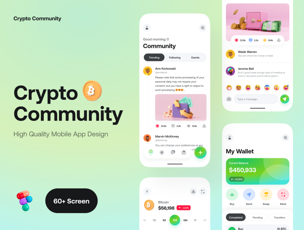 The Crypto Community App UI Kit | 60+ Screens | Available for Figma